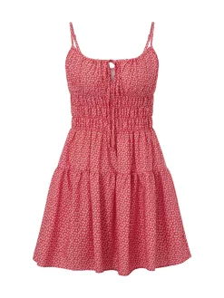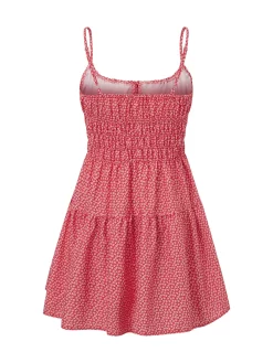 Women Cami Dress Solid/Floral Tie-up Square Neck Smocked Spaghetti Strap Short Ruffle Dress Casual Summer Streetwear