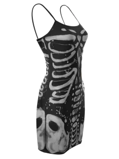 Women’s Bodycon Dress, Spaghetti Strap Sleeveless Human Bone Printed Mini Sling Dresses